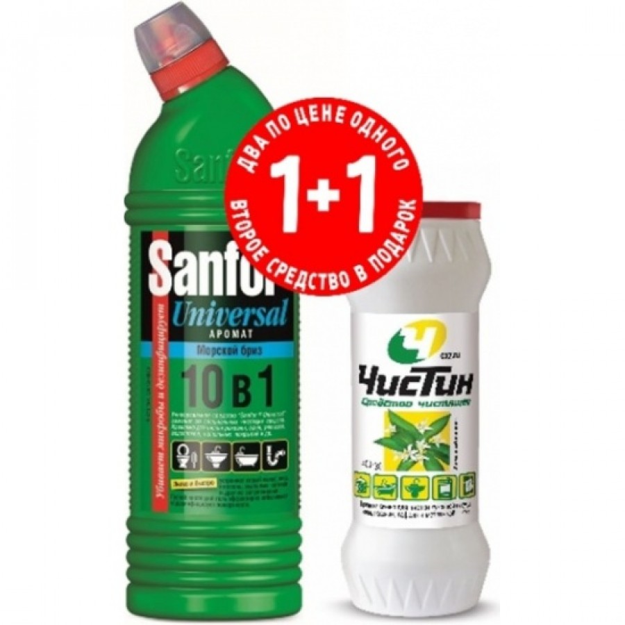САНФОР Универсал Морской бриз 750г+Чистящий порошок лимонный всплеск 400г ПРОМО