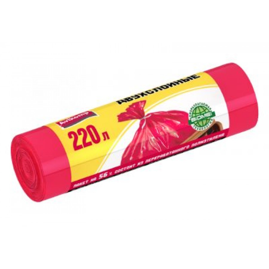 220л AV Пакеты для мусора Уникальные технологии двухслойные ПВД+ПНД 220л, 5шт рулон вишневые