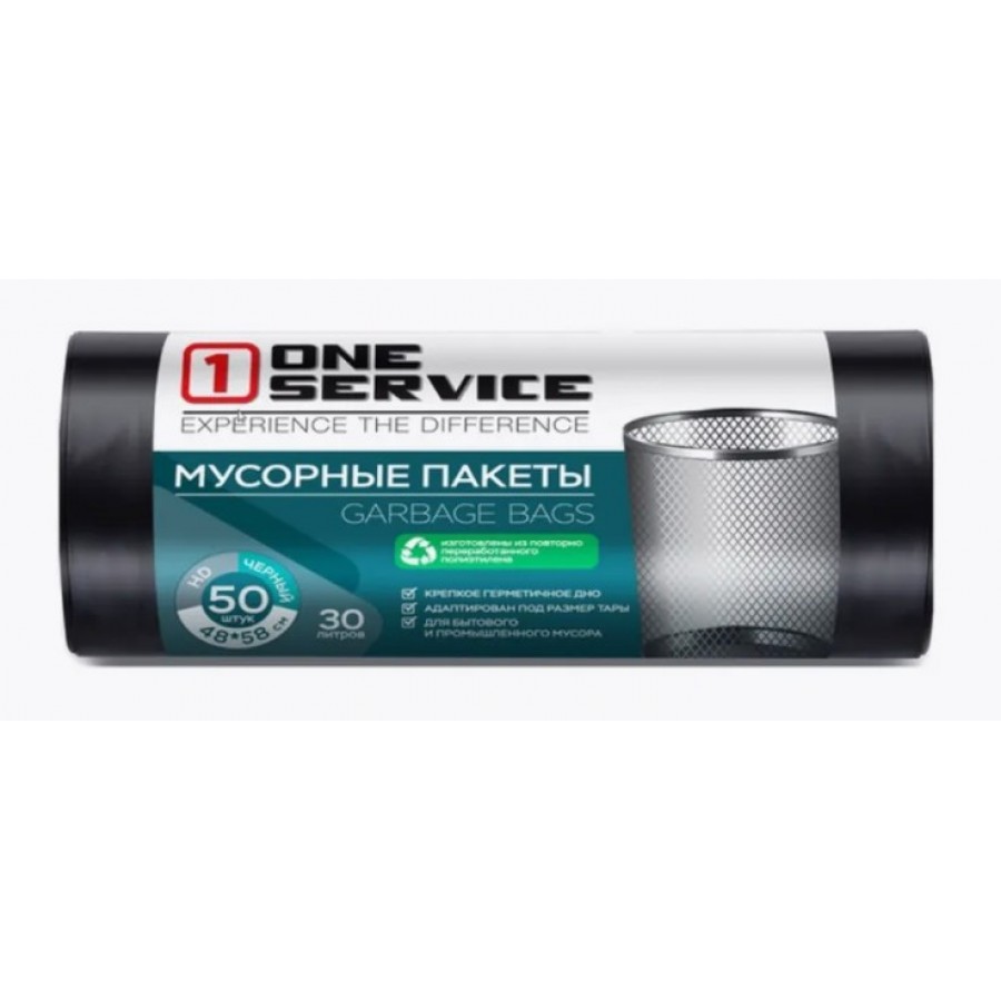 30л ONE service пакеты для мусора HD 48*58см 50шт черные