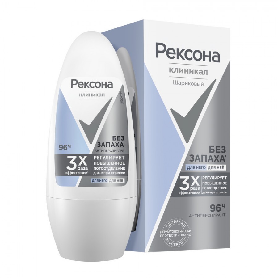 РЕКСОНА КЛИНИКАЛ дезодорант ролик 50мл жен Гипоаллергенный без запаха BOX