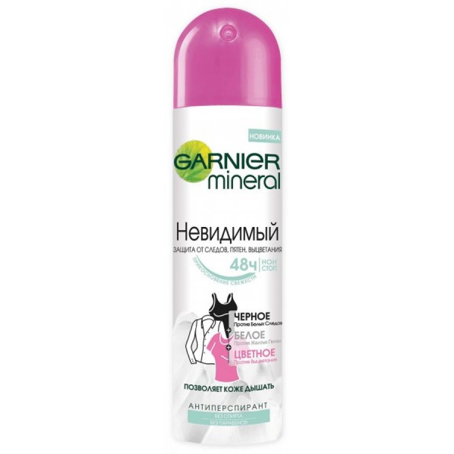Garnier Mineral "Невидимый" - дезодорант-антиперспирант с защитой от следов, пятен, выцветания. Он не только защитит вас от пота и запаха в течение 48 часов*, но и позаботится об одежде. Его формула с прозрачными ингредиентами защищает от белых следов на черном, желтых пятен на белом и от выцветания цветного.