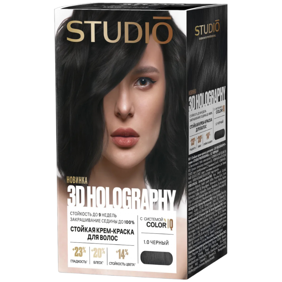 Студио Профешнл 3D стойкая краска для волос т.1.0 Черный HOLOGRAPHY 2025