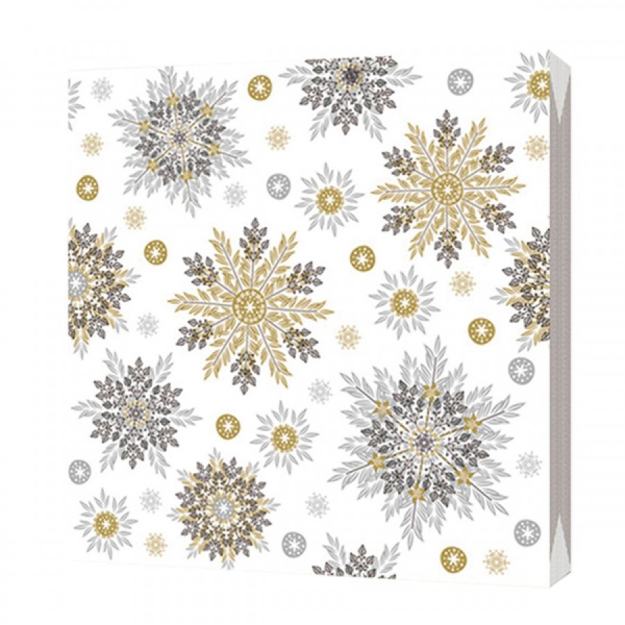 Салфетки бумажные 33*33см 3-х слойная 20шт Снежинки золото+серебро