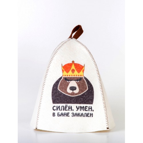 Шапка банная мужская с принтом "Силен.Умен.В бане закален" войлок