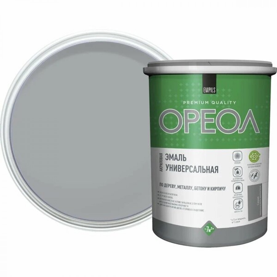 Эмаль акриловая ОРЕОЛ глянцевая серая 1,0 кг.