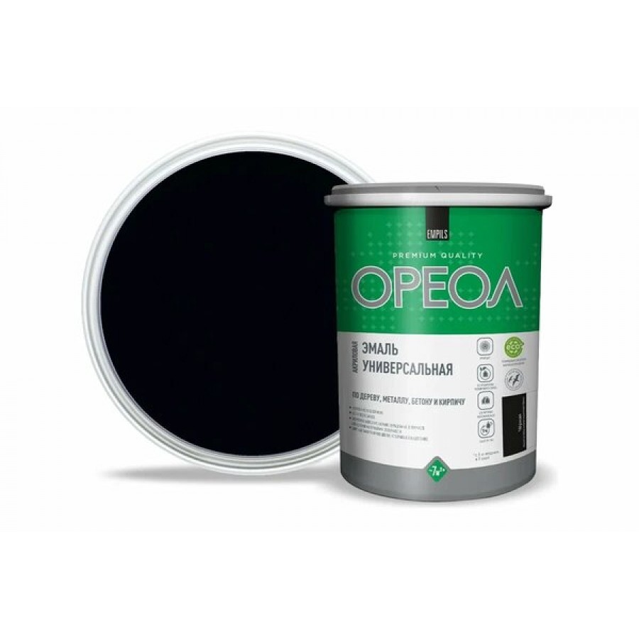 Эмаль акриловая ОРЕОЛ матовая черная 1,1 кг.