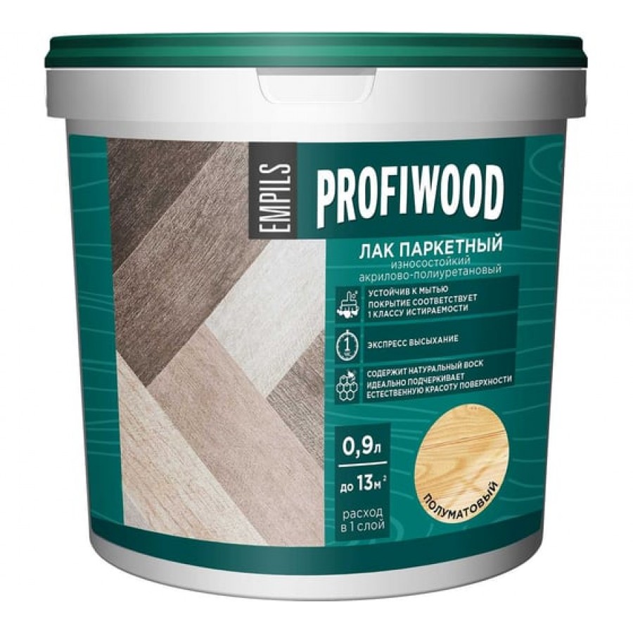 Лак паркетный износостойкий вод.дисперс.акриловый полуматовый 0,9 кг. PROFIWOOD