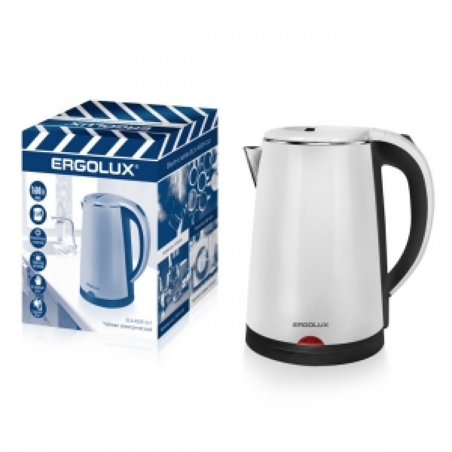 Чайник ERGOLUX ELX-KS09-C41 черно-белый ПРОМО (нерж.сталь/пластик,1.8л, 220-240В, 1600 Вт)