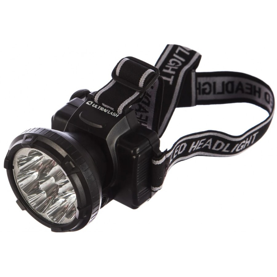 Фонарь LED5363-19F4налоб/метал 2 реж. черный 220В, 9LED пласт.бокс Camelion