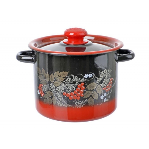 Кастрюля эм. 3,5л цил. красно-черная декор с пл.кнопкой