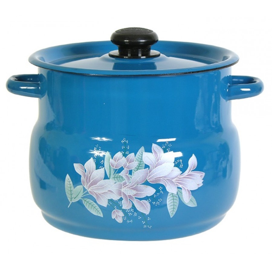 Кастрюля эм. 5,5л сф. бирюзовая декор с пл.кнопкой