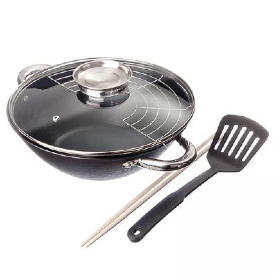 Казан чугун,28см,3,6л,антипр.покр,нерж.ручк,решетка, стекл.крыш,нейлон.лопатка,бамб.палочки SATOSHI