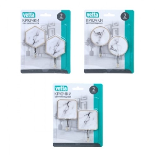 Крючки самоклеящиеся 2шт Белый мрамор пластик, металл VETTA