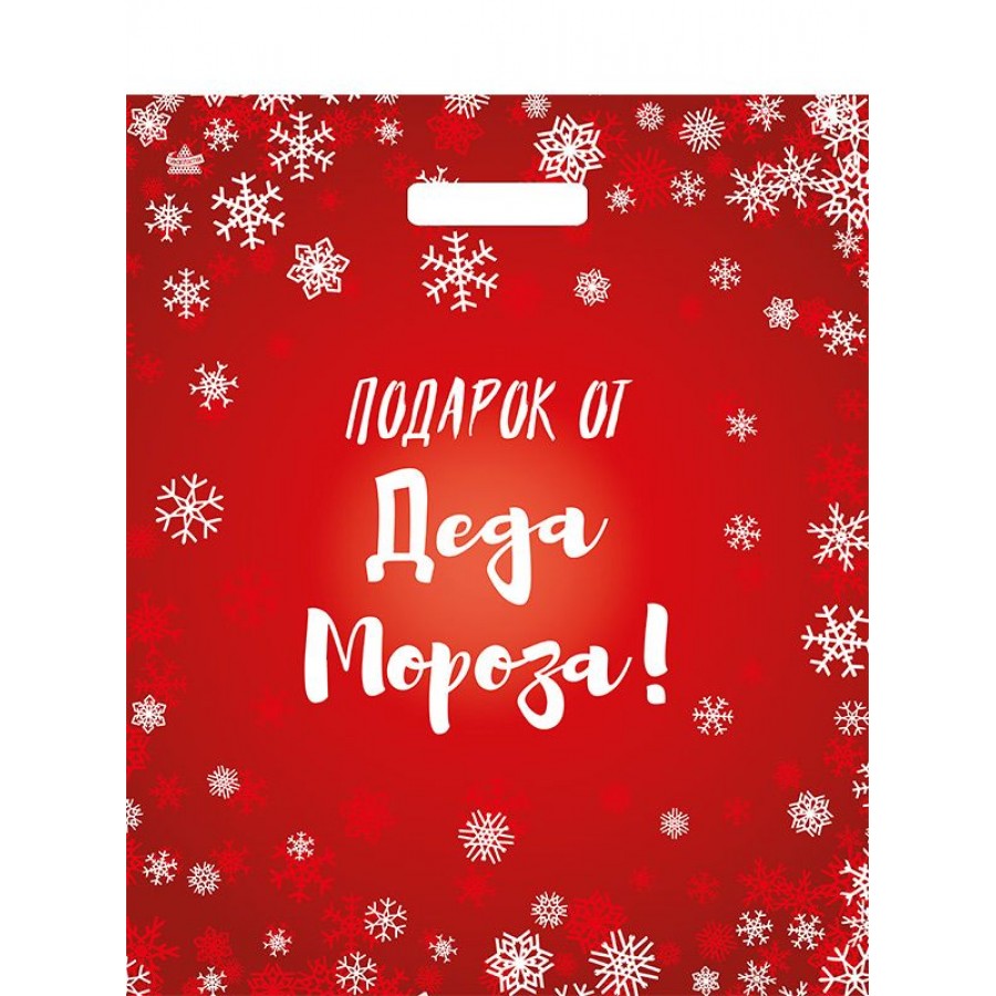 Пакет ПВД с вырубной ручкой 450х380х0,060 Подарок от Деда Мороза Цена за 50шт!!!