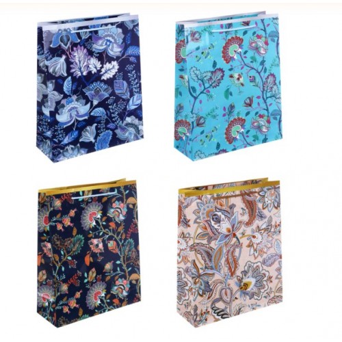 Пакет подарочный бумажный 26*32*9см Цветные узоры 4 дизайна 128гр